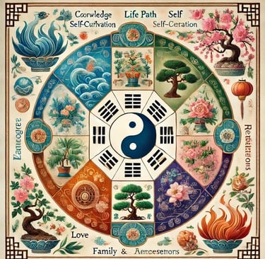 Feng Shui (Chine) : harmoniser l’énergie (Qi) dans l’espace et en soi, pour favoriser fluidité, équilibre et bien-être.